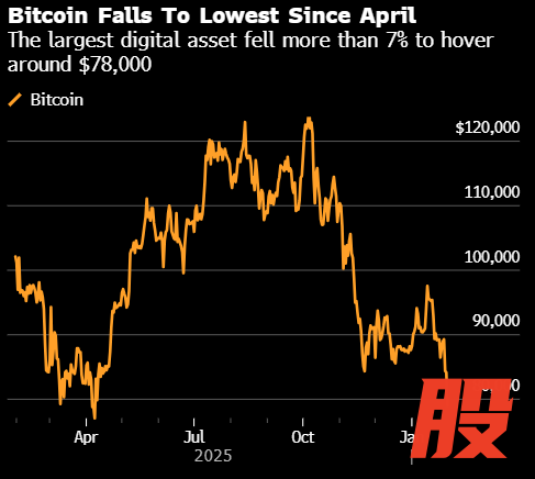 比特币周六下午早些时候在纽约大幅下跌,跌破8万美元大关,跌至2025年4月以来的最低水平。