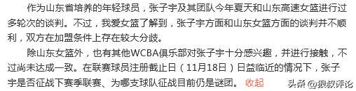 根据媒体人“我爱女篮”的爆料,张子宇新赛季能否顺利登陆WCBA目前仍有诸多不确定性。